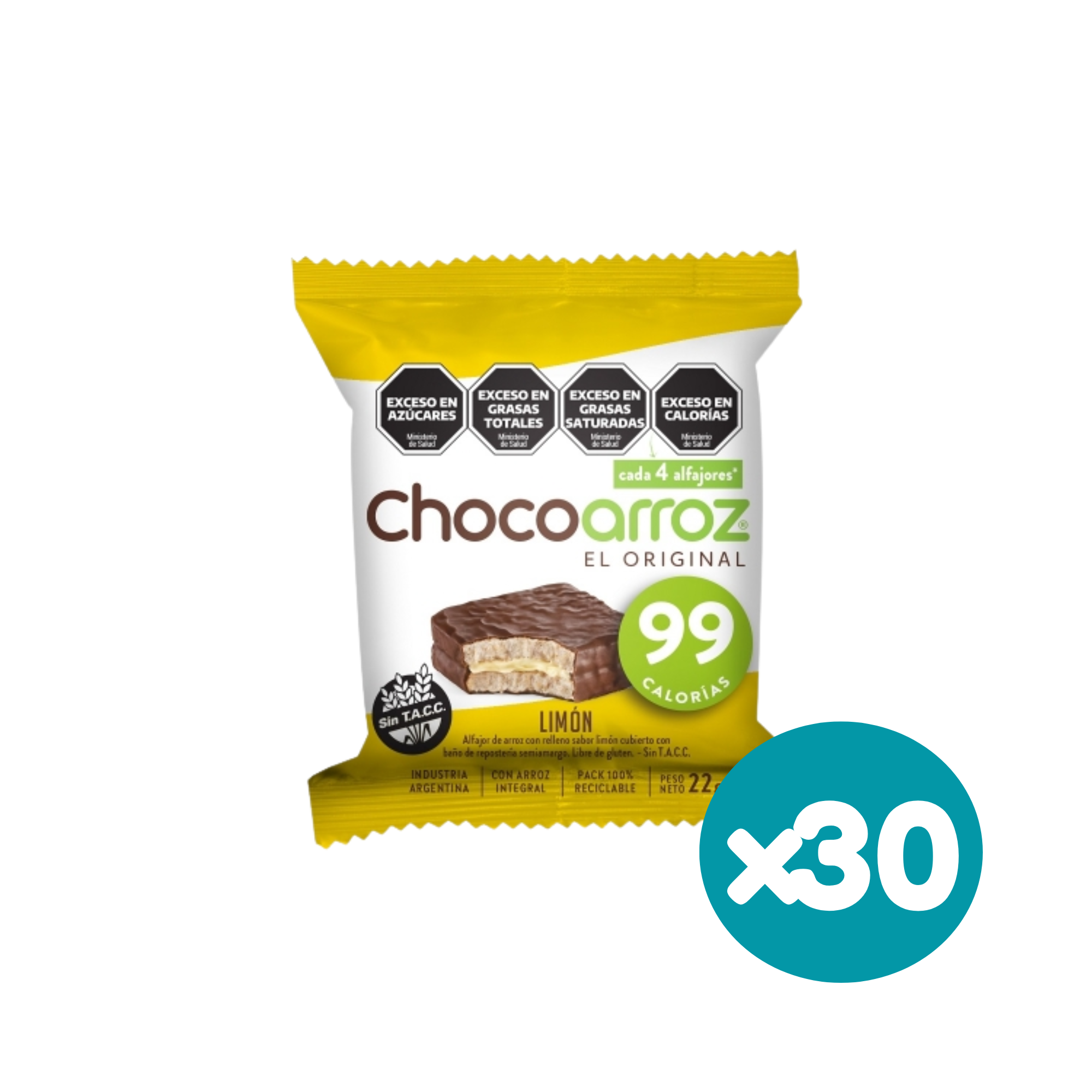 Alfajor Chocoarroz Limón 22g (Pack x30 – 600g)