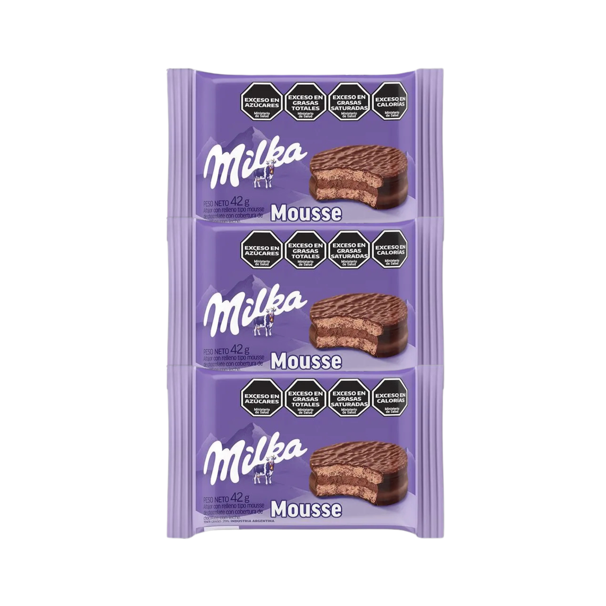 Alfajor Milka TRIPLE Mousse, Baño de Chocolate (55gr) (Pack de 3u) (165gr)